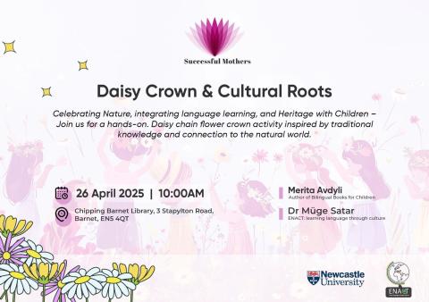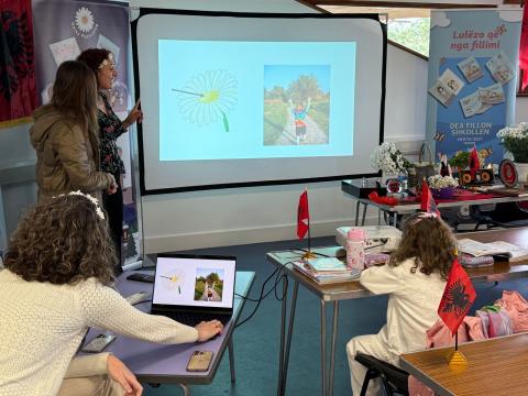 We made Daisy Flower Crowns (Lule Margarita) with 15 children on 26 April 2025 at Shkolla Shqipe ILIRIA, at the Chipping Barnet Library in London! All children made beautiful crowns and learned different parts of the flower, e.g. disku, kërcelli, petalet, and gjethet. We also talked about the symbolism of daisies: pafajësia (innocence), fillimi i ri (new beginnings) and fëmijëria (childhood).