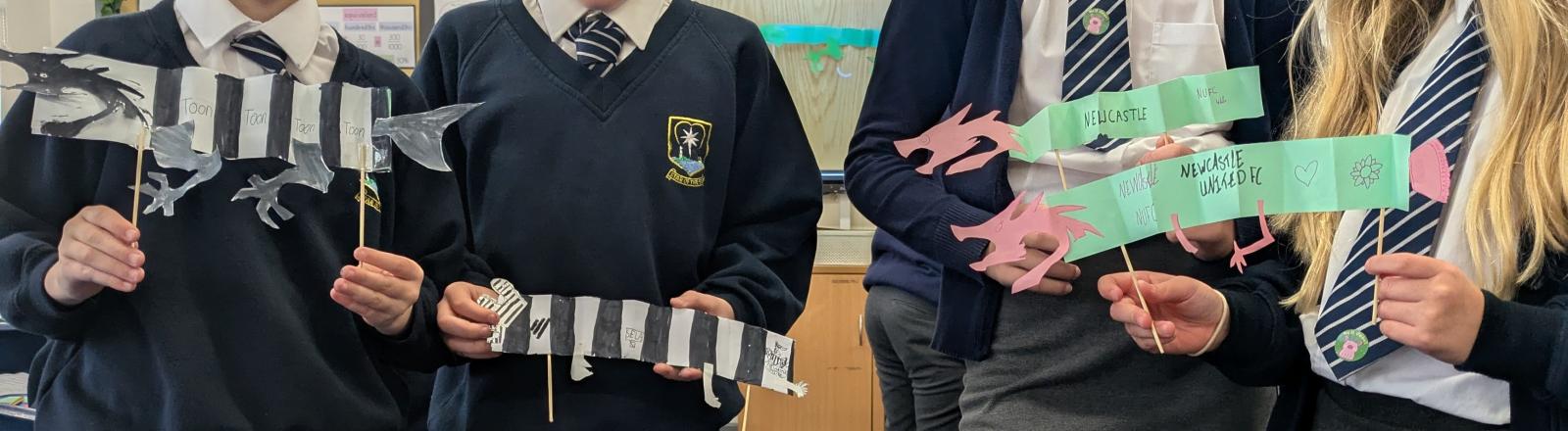 ENACT research assistant Eve and Eleanor visited two Year 5 classes at Star of the Sea Primary School in Whitley Bay. Children learned importance of dialects and pronunciations whilst making their personalised Lambton Worms.