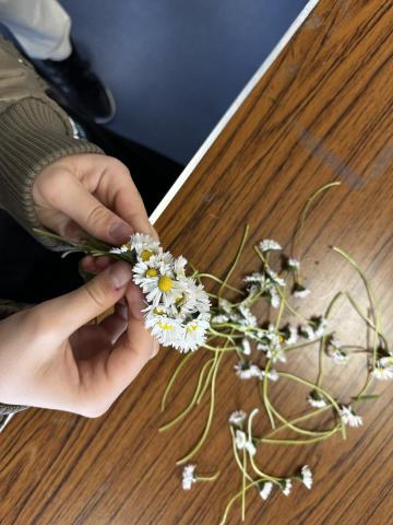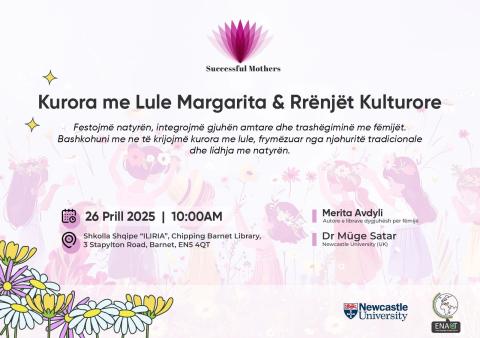 We made Daisy Flower Crowns (Lule Margarita) with 15 children on 26 April 2025 at Shkolla Shqipe ILIRIA, at the Chipping Barnet Library in London! All children made beautiful crowns and learned different parts of the flower, e.g. disku, kërcelli, petalet, and gjethet. We also talked about the symbolism of daisies: pafajësia (innocence), fillimi i ri (new beginnings) and fëmijëria (childhood).